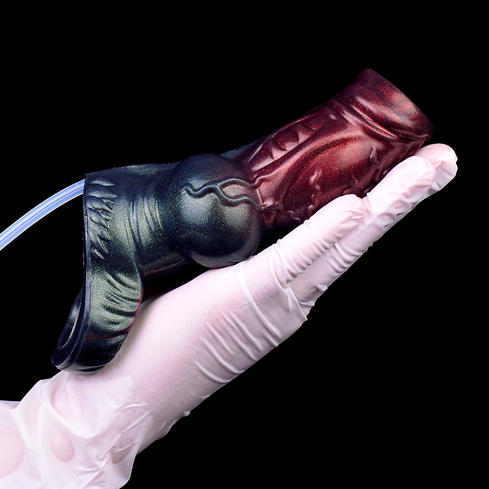 Stellen Sie sich den Nervenkitzel vor, wenn Sie in die spritzende Penishülle schlüpfen und deren tiefrote Farbe Ihre Aufmerksamkeit erregt, während Sie mit Ihren Fingern über das glatte, hochwertige Material gleiten. Dies ist nicht nur eine Hülle – es ist eine Einladung, tiefer in Ihre Fantasien einzutauchen und Ihr Vergnügen mit jedem Stoß zu steigern.