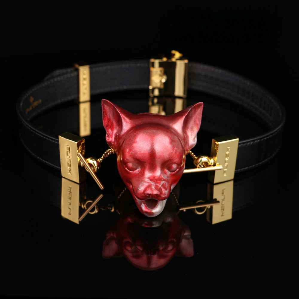Dieser Mundballknebel, der einem Hundekopf nachempfunden ist, besticht durch raffinierte anatomische Details, die Ihrem BDSM-Spiel eine verspielte und zugleich mutige Note verleihen. Seine kompakte Größe, inspiriert von kleinen Rassen wie dem Chihuahua, verleiht ihm eine schelmische Note und bleibt gleichzeitig funktional. Obwohl das Design etwas übertrieben ist, bieten die weichen Linien eine beeindruckende Balance aus Stil und Funktionalität. Sind Sie bereit, Ihren Fantasien mit diesem bezaubernden und zugleich provokanten Accessoire freien Lauf zu lassen?