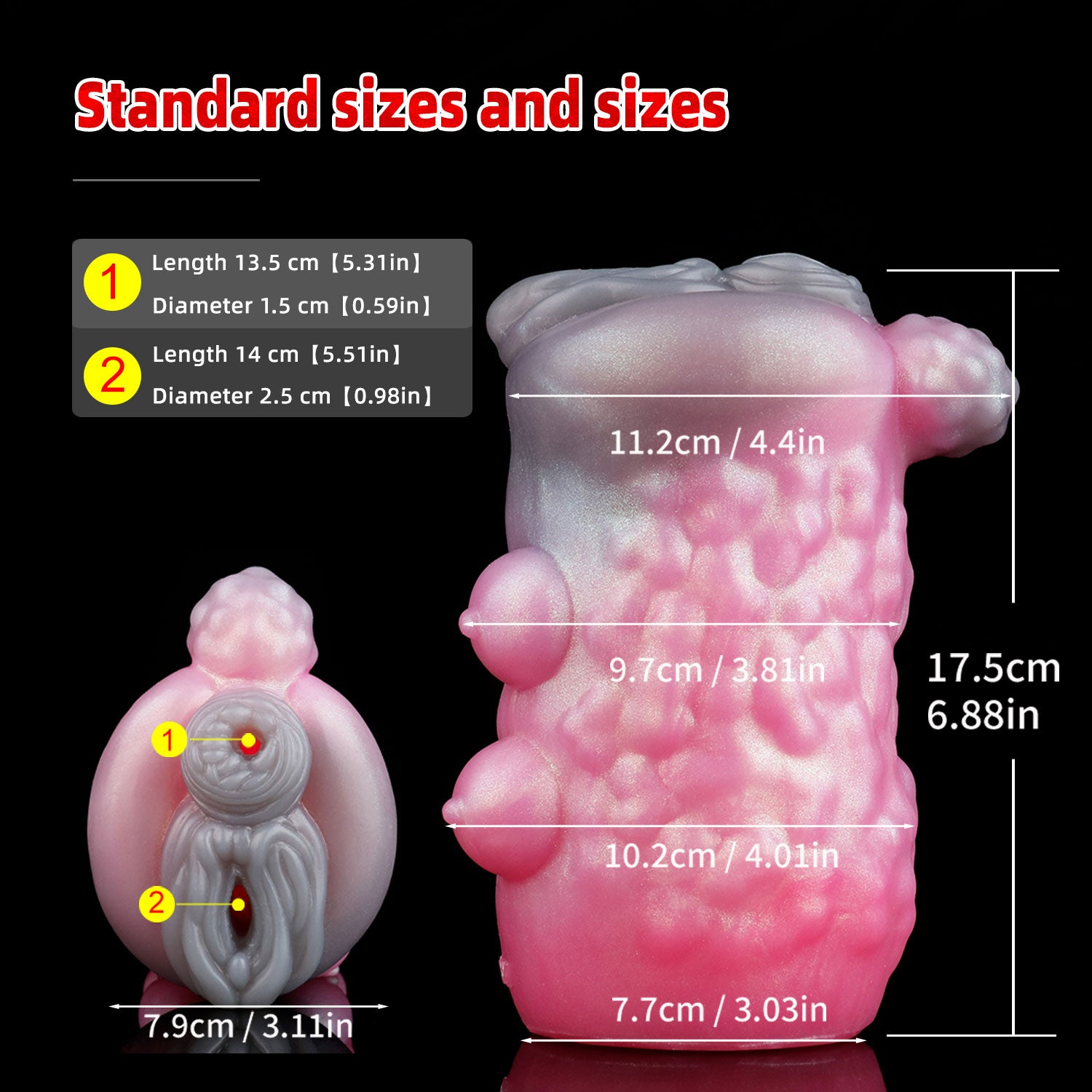 - Enger, sinnlicher Eingang: Der Vaginalgang weist eine unregelmäßige, dreidimensionale Textur mit feinen Falten und wellenartigen Mustern auf, die die Reibung erhöhen und so für ein allmählich intensiver werdendes Gefühl sorgen.