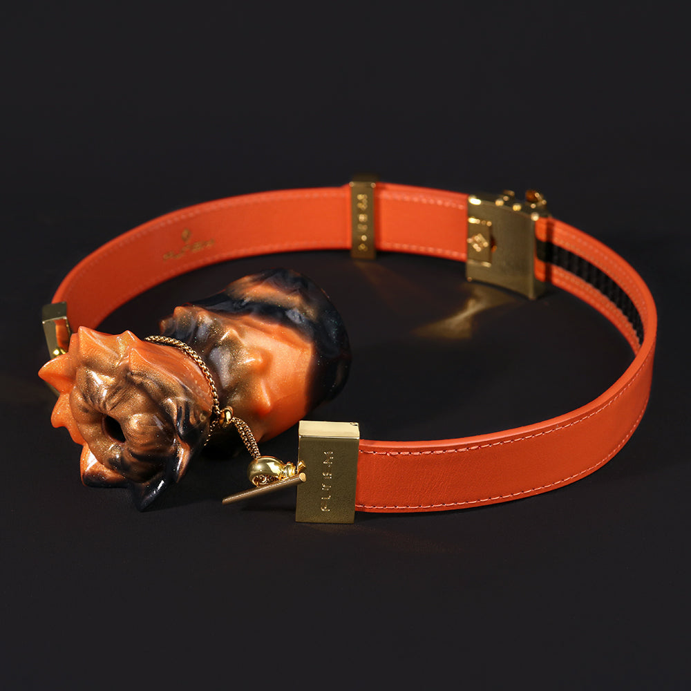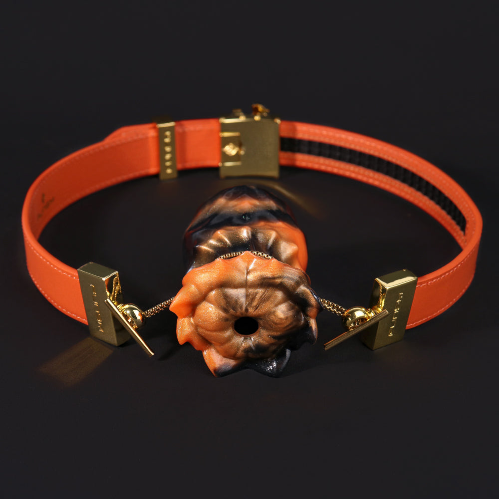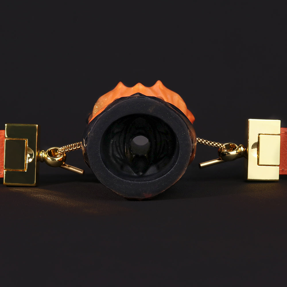 Im schummrigen Licht des Spielzimmers trifft Ästhetik auf Intensität. Der Rose Fantasy Ball Gag präsentiert eine dramatische Fusion aus feurigem Orange und tiefem Schwarz, die wie ein dunkles Blumengeheimnis über die Lippen Ihres Untergebenen erblüht. Die aus körperverträglichem Silikon gefertigte Struktur imitiert den Druck beim Einführen und vermittelt gleichzeitig eine kraftvolle symbolische Geste der Schönheit unter Kontrolle.
