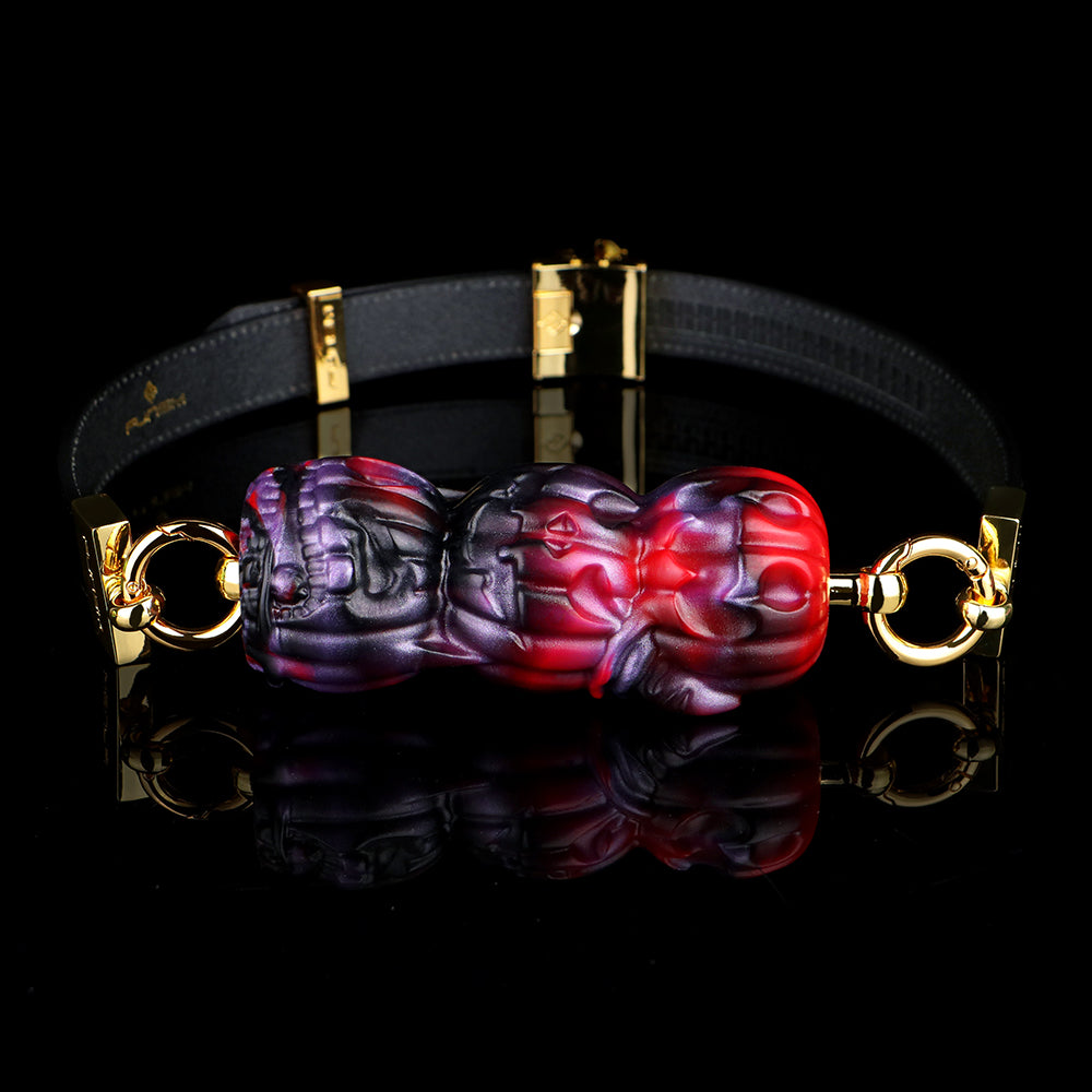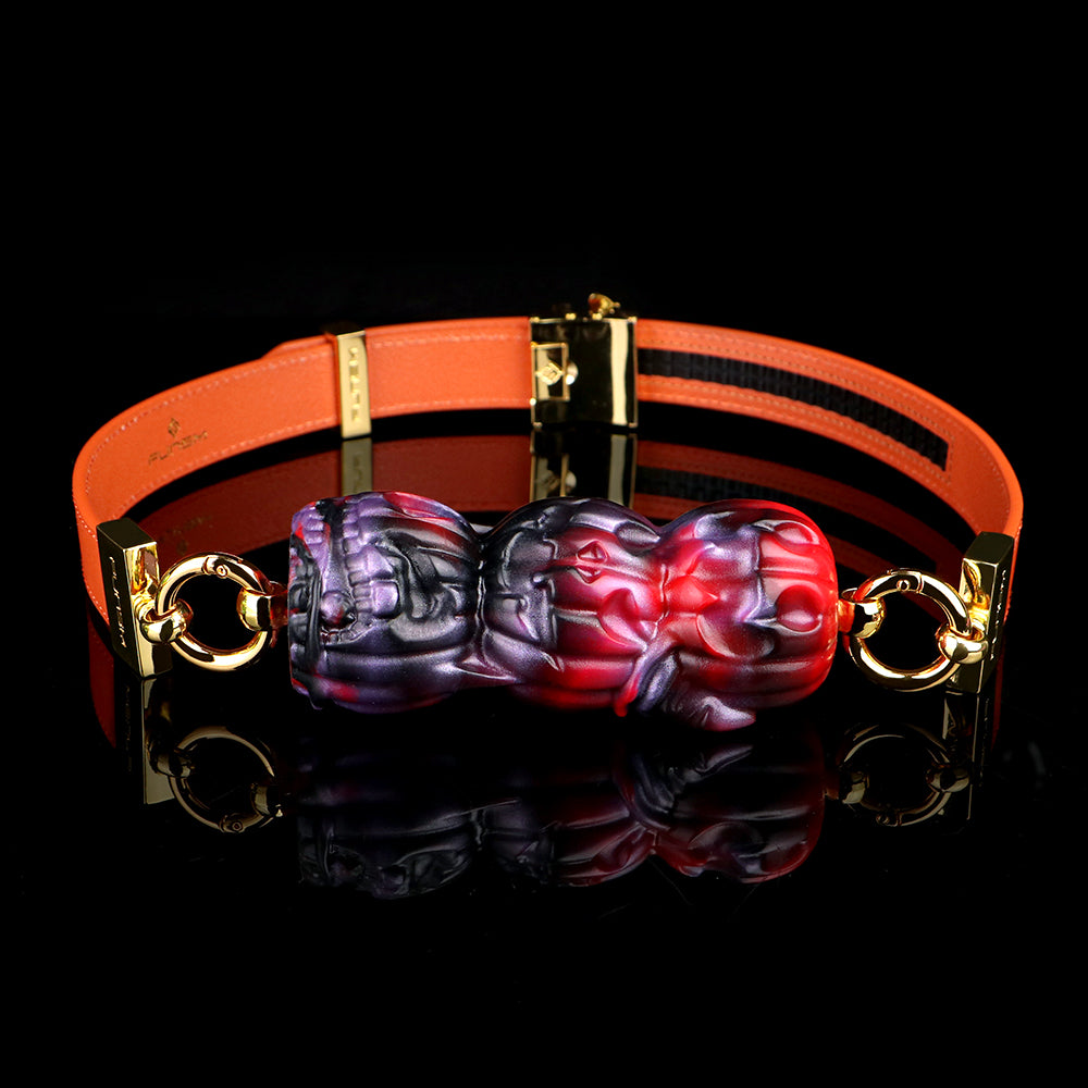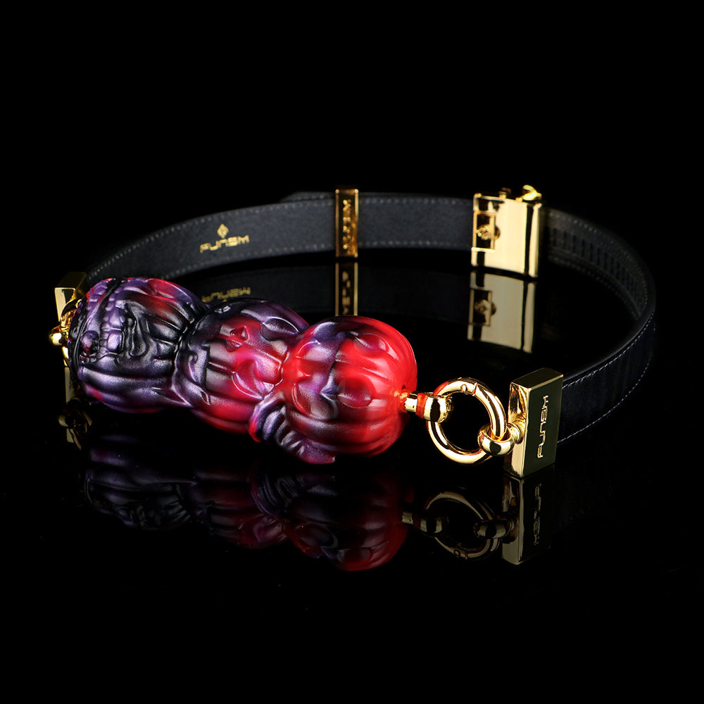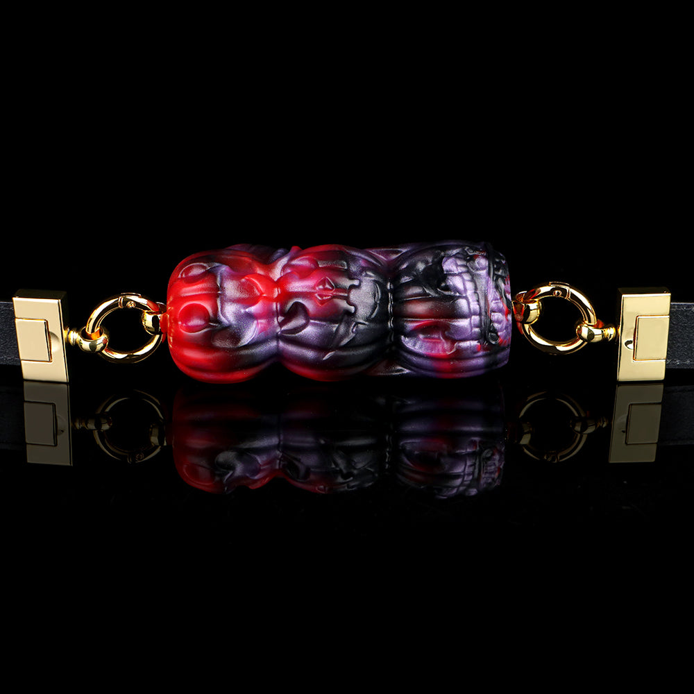 Mit seiner atemberaubenden Farbverläufen aus Rot, Schwarz und Lila strahlt dieser Kürbiskopf -Ballknebel eine noch größere Faszination aus. Die dunkle Farbgebung, kombiniert mit leuchtenden Rot- und Lilatönen, erzeugt im Licht einen hypnotisierenden und teuflischen Glanz, der das visuelle Erlebnis steigert und der Szene ein dramatisches Element verleiht. Im Vergleich zu herkömmlichen einfarbigen Knebeln ist dieser gestapelte Kürbiskopf-Ballknebel nicht nur sammelwürdiger, sondern auch anregender und sorgt für jedes Trageerlebnis voller spannender Vorfreude.