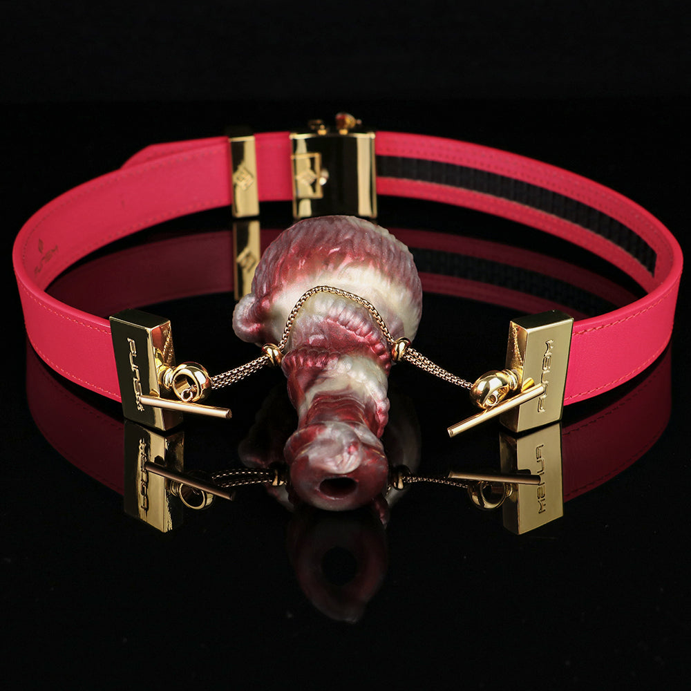Beim Kauf des Dildoknebels erhalten Sie drei einzigartige Metallbügel, die jeweils auf Ihre Stimmung und Wünsche abgestimmt sind. Wählen Sie aus drei verschiedenen Lederbandfarben, um Ihrem Erlebnis eine persönliche Note zu verleihen und jede Session optisch zu einem Erlebnis zu machen.