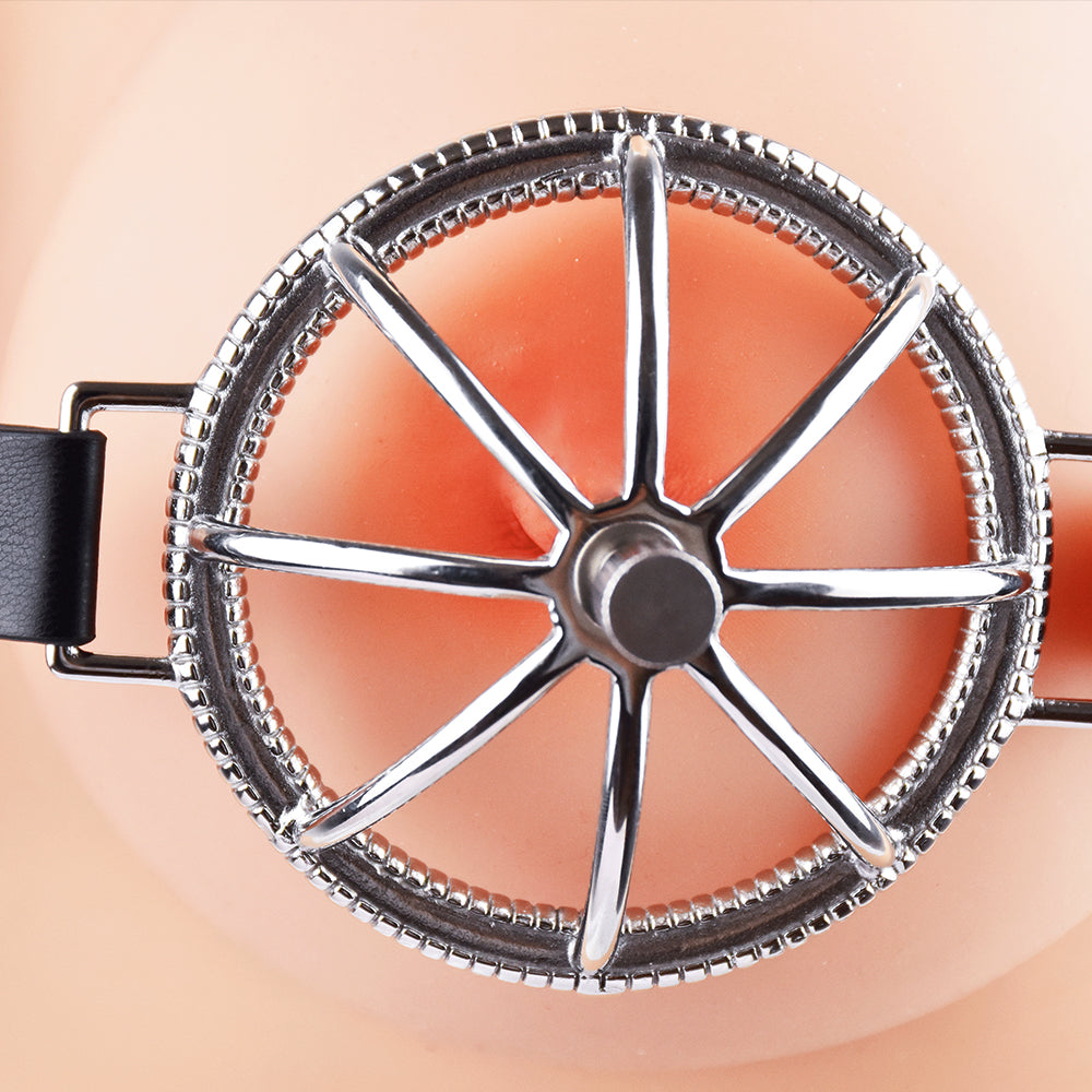 - Sicherer Sitz für dynamisches Spiel : Verstellbare Lederriemen mit Schnallen im Zahnradstil sorgen dafür, dass die Brustwarzenringe auch bei heftigen Bewegungen fest an ihrem Platz bleiben.