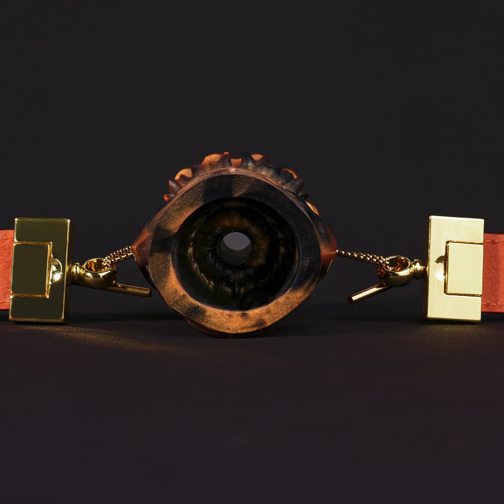 Dieser vertikale Mundknebel weicht mit seiner aufrechten Struktur von traditionellen Ballknebelformen ab und passt sich ganz natürlich der Mundöffnung an. Entwickelt für BDSM- Fans, schmiegen sich seine fein geformten, blütenblattartigen Ränder sanft an die Lippen und sorgen für langanhaltenden Komfort. Die filigrane florale Ästhetik verstärkt den Reiz und verleiht dem Erlebnis eine künstlerische und raffinierte Note.