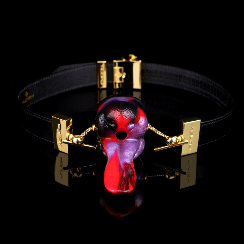 Dieser vertikale Wolfsmaul- Ballknebel definiert Bondage -Ausrüstung neu. Sein offenes Wolfsmaul-Design strahlt eine wilde und gebieterische Präsenz aus. Die markante Kombination aus Rot-, Schwarz- und Lilatönen schafft eine perfekte Balance zwischen Gefahr und Geheimnis und reizt Ihre Sinnesgrenzen. Die sorgfältig geformten Reißzähne und die Zunge sorgen dafür, dass jedes Tragen sowohl optisch als auch haptisch ein Genuss ist.
