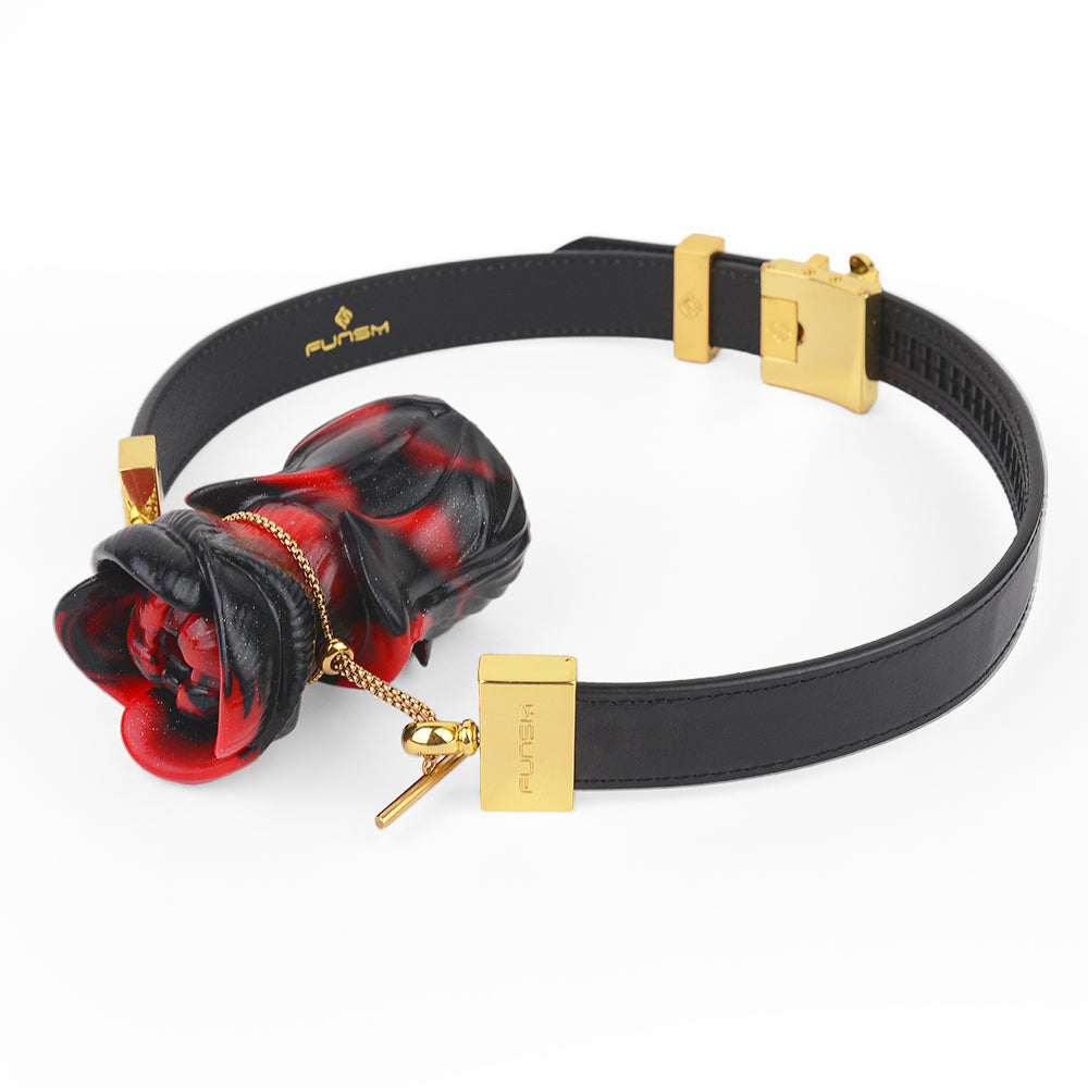 Im Gegensatz zu herkömmlichen Knebeln, die oft rein funktional sind, kann dieser rosenförmige Mundknebel auch als dekoratives Accessoire dienen und sich nahtlos in das Gesamtoutfit des Trägers integrieren. Er ist perfekt für alle, die BDSM-Funktionalität mit hochwertiger Modeästhetik verbinden möchten.