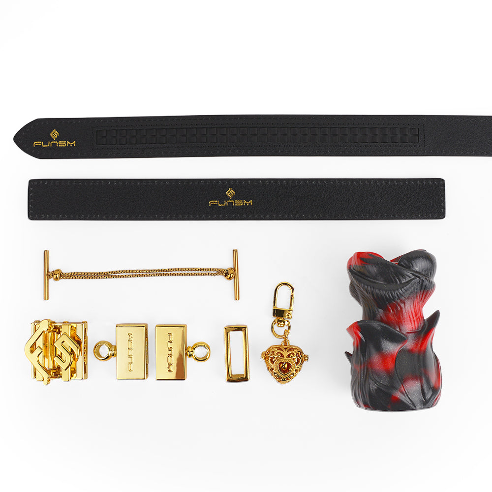 Dieses exquisite Der LustBond Ballknebel verkörpert die Essenz der Bondage -Ästhetik. Sein markantes schwarz-rotes Wirbelmuster verleiht den Blütenblättern einen dramatischen und fesselnden Look. Die leuchtenden Rot- und Tiefschwarztöne, gepaart mit luxuriösen goldenen Beschlägen – wie Schnallen und Ketten – setzen ein mutiges und zugleich anspruchsvolles Statement in der Welt des BDSM.