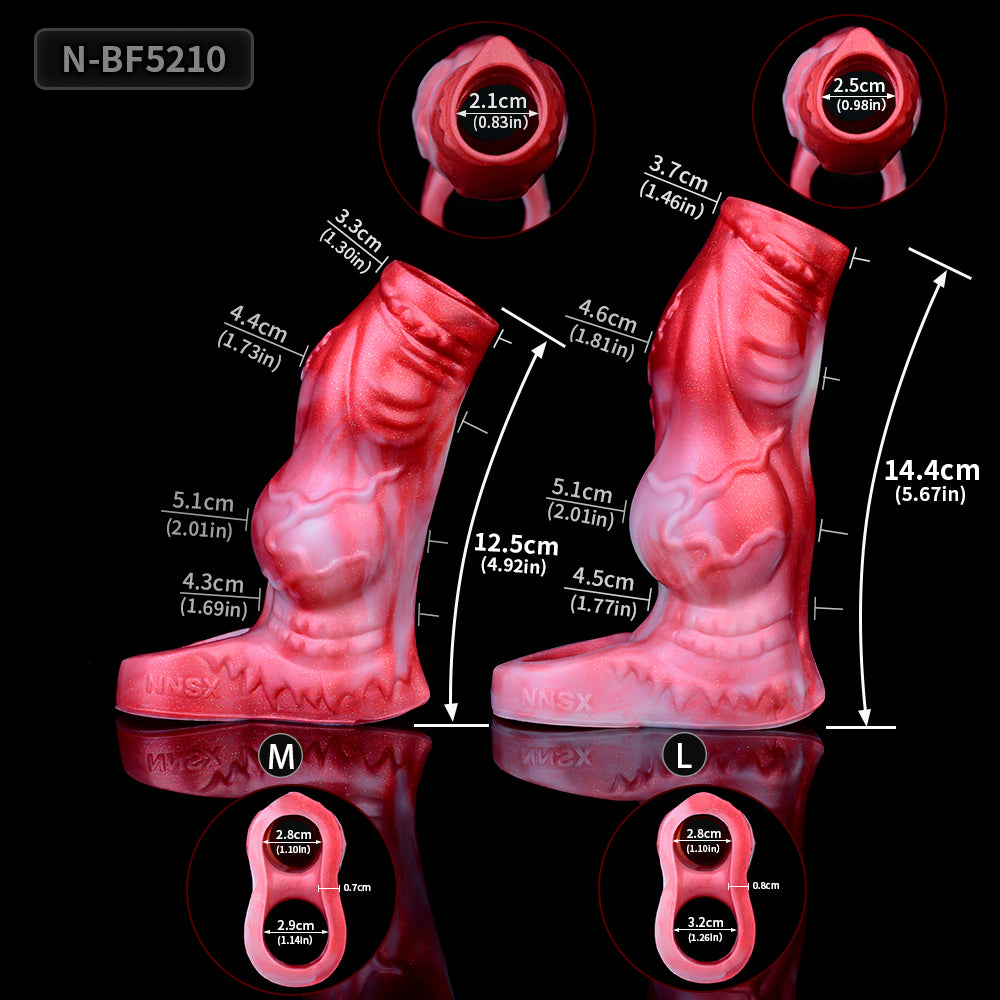 Fusionando la mitología antigua con el diseño erótico, esta funda de pene de fantasía presenta intrincados grabados de escamas de dragón que evocan misterio y poder primordial.