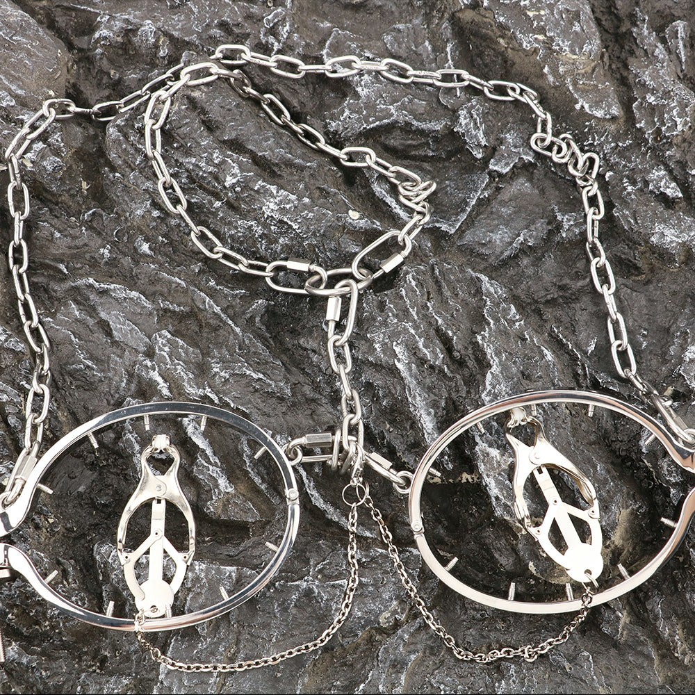 Las abrazaderas para pezones con cuerdas de bondage de doble anillo combinan la potencia bruta del acero inoxidable con el atractivo sensual de las cuerdas de alta calidad, creando un kit de bondage que es visualmente impactante y funcionalmente dinámico.